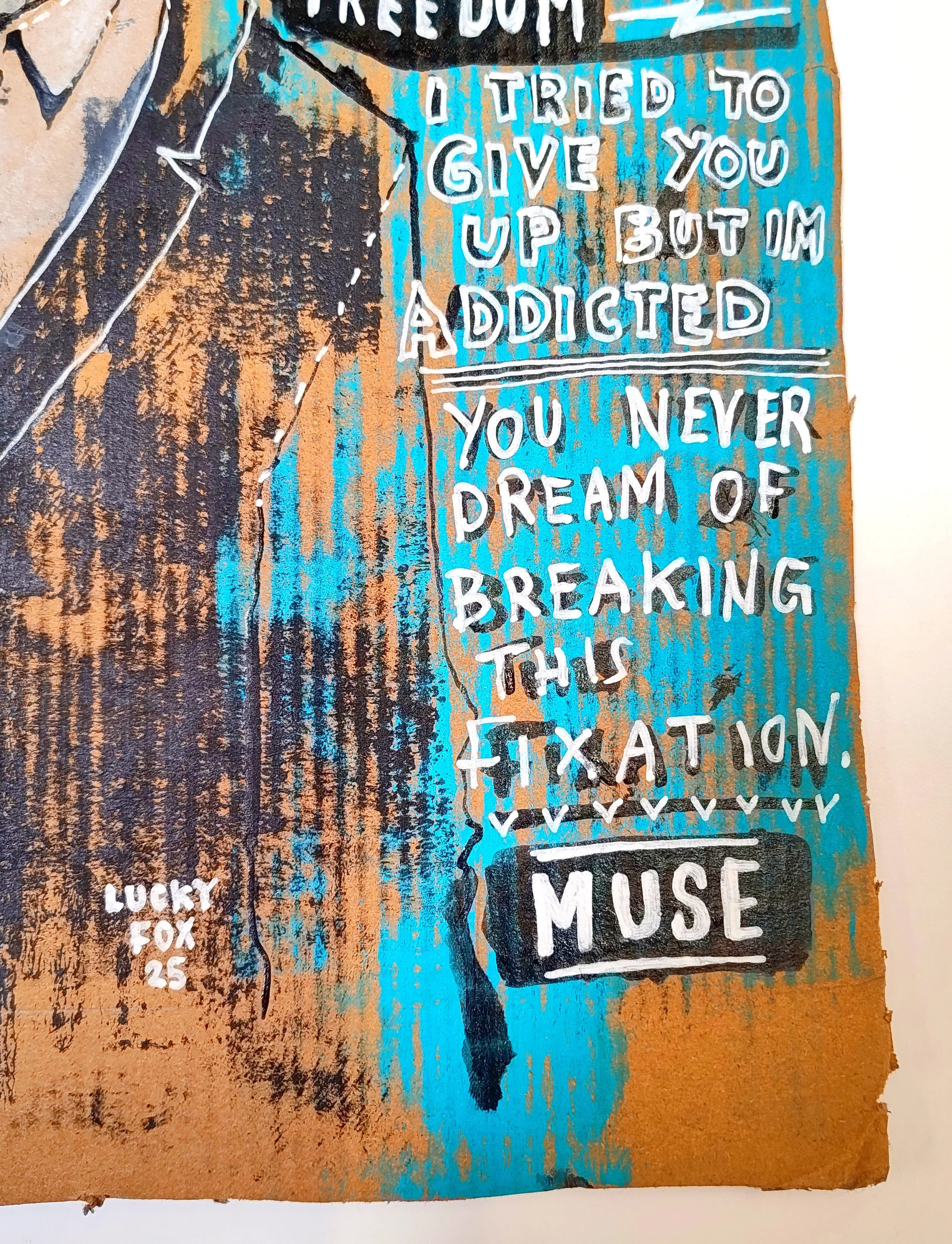 Categories: All Boots Fine Art Giclee Prints Original Art Shop All | Boots | Fine Art Giclee Prints | Original Art | 20" x 24" Ozzy - Original Painting on cardboard framed - £150.00 - A Pair Of 12" x 23" Canvases - Amongst The Daisies and Dandelions - £140.00 19" x 16" - Step - Canvas Board Original Painting - Lucky Fox £100.00 Sold Out 18" x 12" Muse - Time Is Running Out - Original Painting - £60.00 - 12" x 18" - Perspective, Canvas Original Painting - £120.00 16" x 12" Fractured but Fine - Original Painting - £60.00 - Tranquil - A3 Original Painting £120.00 Punk As F*ck - A3 Original Painting - £60.00 - 12" x 18" - Dimensions, Canvas Original Painting - £120.00 Jarvis Cocker - 10.5" x 13.5" x 0.75" Wooden Block Canvas Original Painting - Lucky Fox £60.00 Kurt Cobain - 10.5" x 13.5" x 0.75" Wooden Block Canvas Original Painting - Lucky Fox £60.00 Fox on Teal - 10" x 10" x 1.5" Wooden Block Canvas Original Painting - Lucky Fox £60.00 Do Not Feed The Drones - 10" x 10" x 1.5" Wooden Block Canvas Original Painting - Lucky Fox £65.00 Rock On - 10" x 10" x 1.5" Wooden Block Canvas Original Painting - Lucky Fox £65.00 Wonderland - 10" x 10" x 1.5" Wooden Block Canvas Original Painting - Lucky Fox £65.00 Sapphires - A1 (framed) Original Acrylic Painting - Lucky Fox £250.00 Passionately Punk - 16" x 19.5" x 1" Acrylic Painting - Lucky Fox £160.00 Punk Love - A3 Original Painting - Lucky Fox £60.00 The Kiss - 11" x 13" x 0.75" Original Painting - Lucky Fox £95.00 SOLD Breeze - 11" x 13" x 0.75" Original Painting - Lucky Fox £65.00 Sold Out Cherry Red's Walking Boots - A3 Original Painting - Lucky Fox £120.00 Flowers & Boots - A3 Original Painting - Lucky Fox £120.00 Comic Converse - A3 Original Painting - Lucky Fox £120.00 SOLD Memories. Original Artwork £190.00 Sold Out Not All Those Who Wander Are Lost Suitcase £120.00